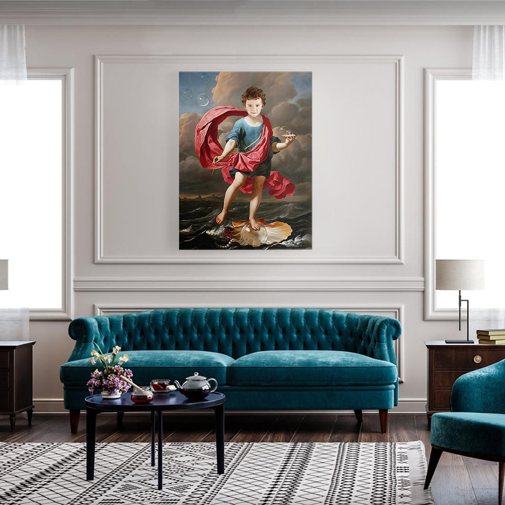 Looking for a unique gift? Show your love in a fun, yet meaningful way with a custom made portrait of 'Boy Blowing Soap Bubbles'.